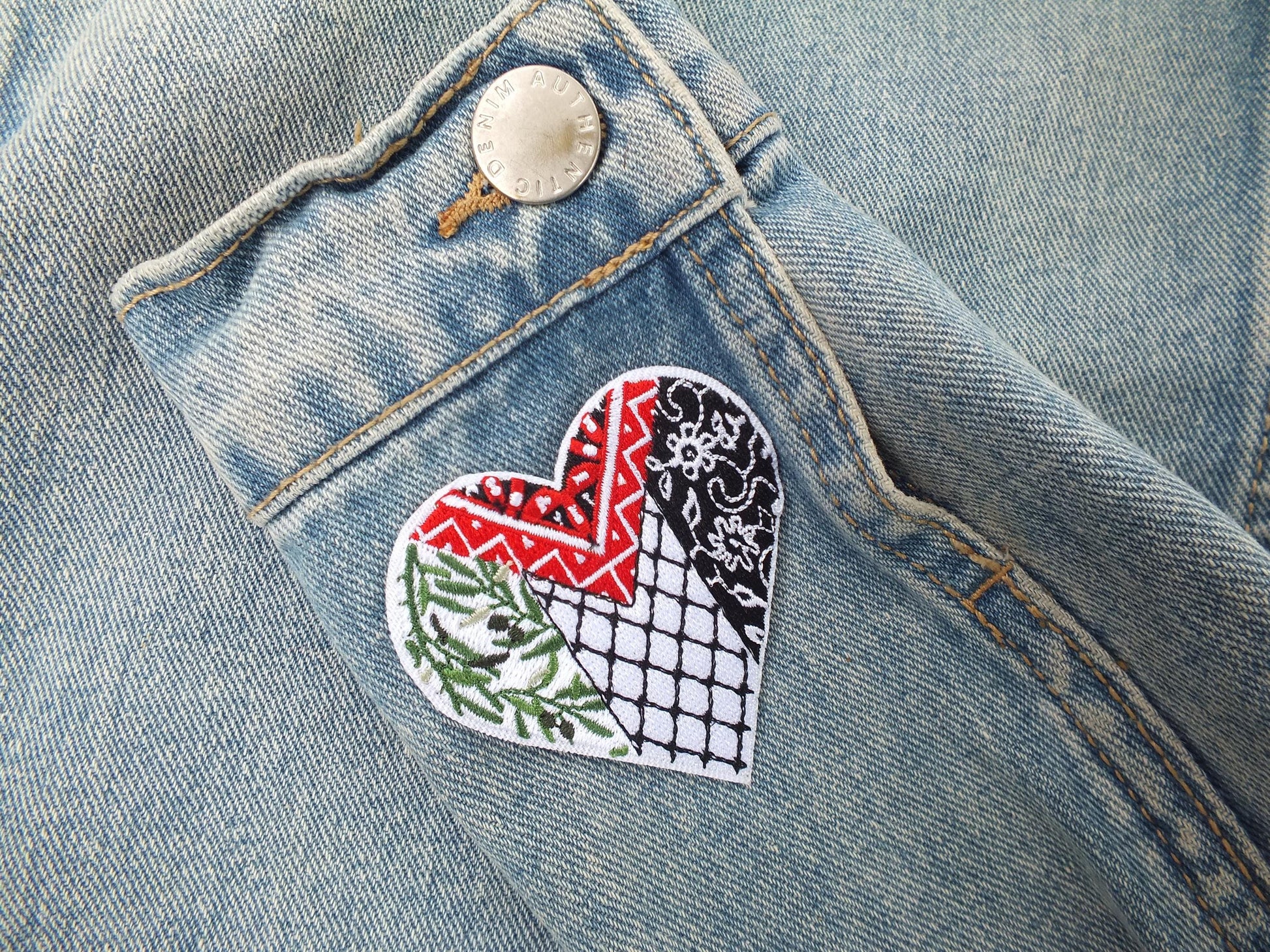 Free Palestine Iron On Patch in the shape of a Heart for Gaza Fundraisers
