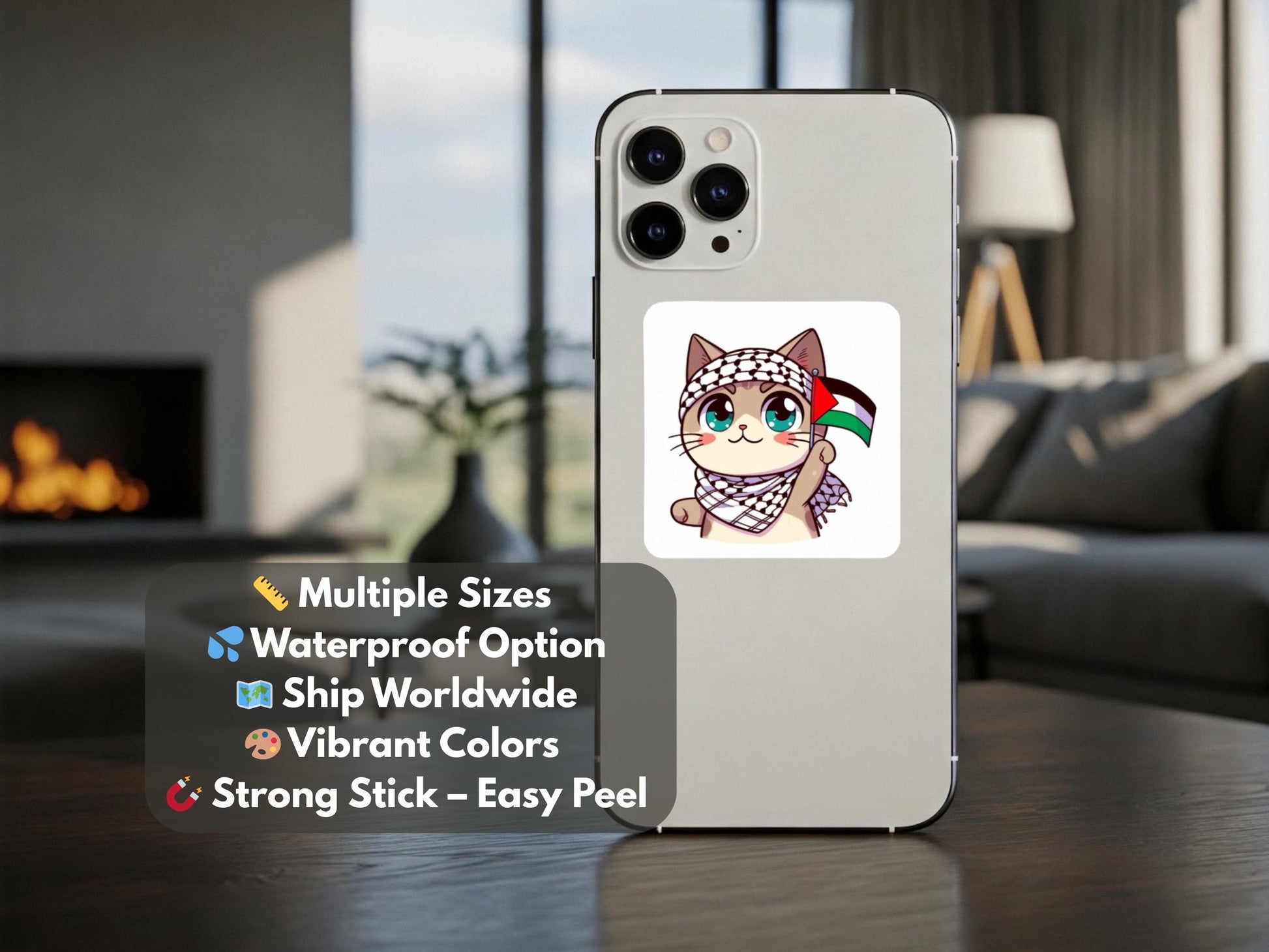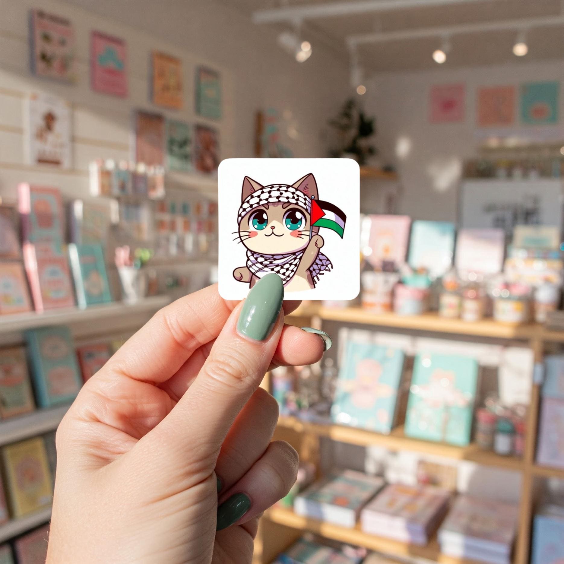 Free Palestine Flag Decal – Political Vinyl Sticker for Car, Laptop, Water Bottle, iPad – Durable & Weatherproof - Palestine Cat for Gaza