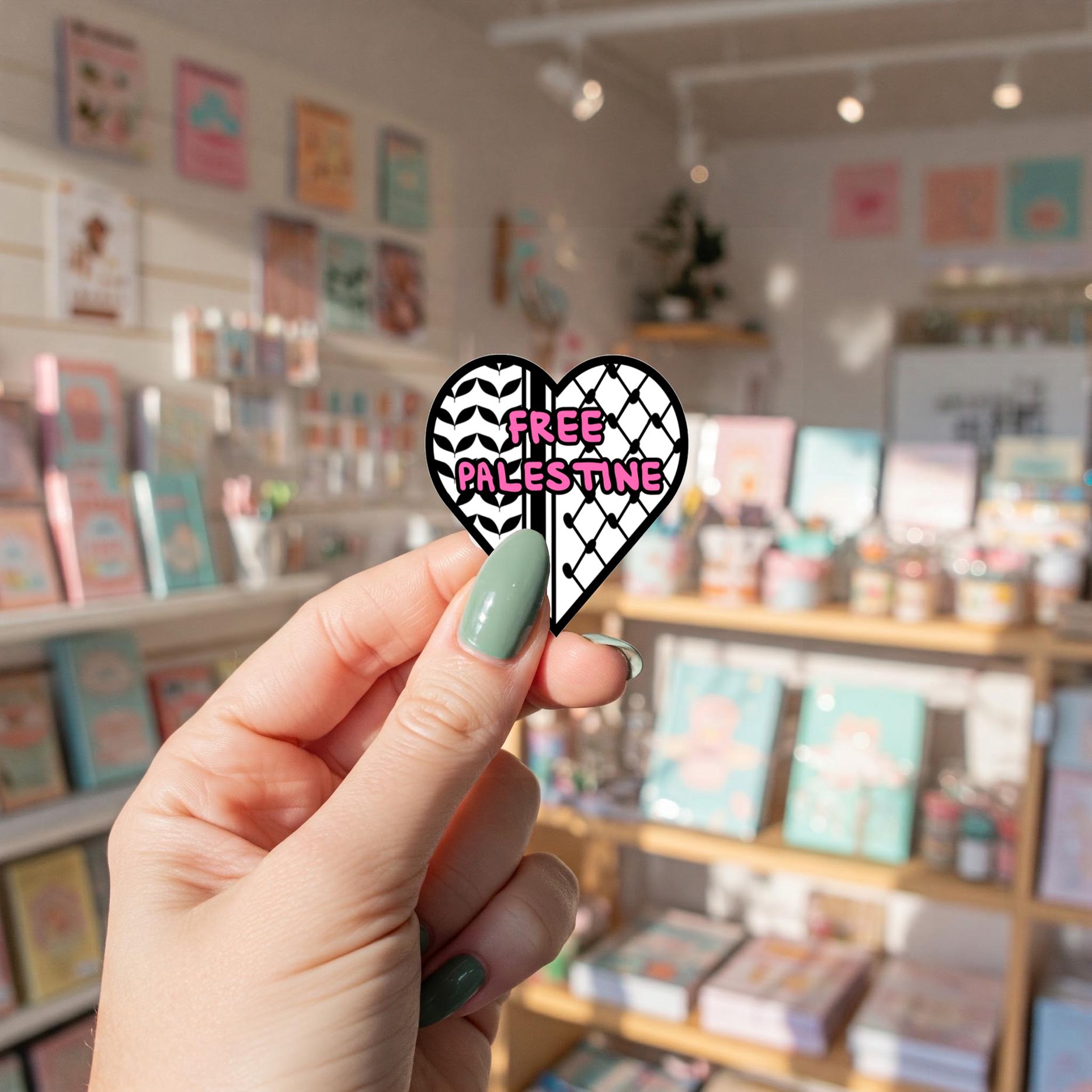 Free Palestine Love Heart Vinyl Decal - Black & White Glossy Vinyl Decal for Journal, Water Bottle, Phone – Gaza Solidarity Sticker