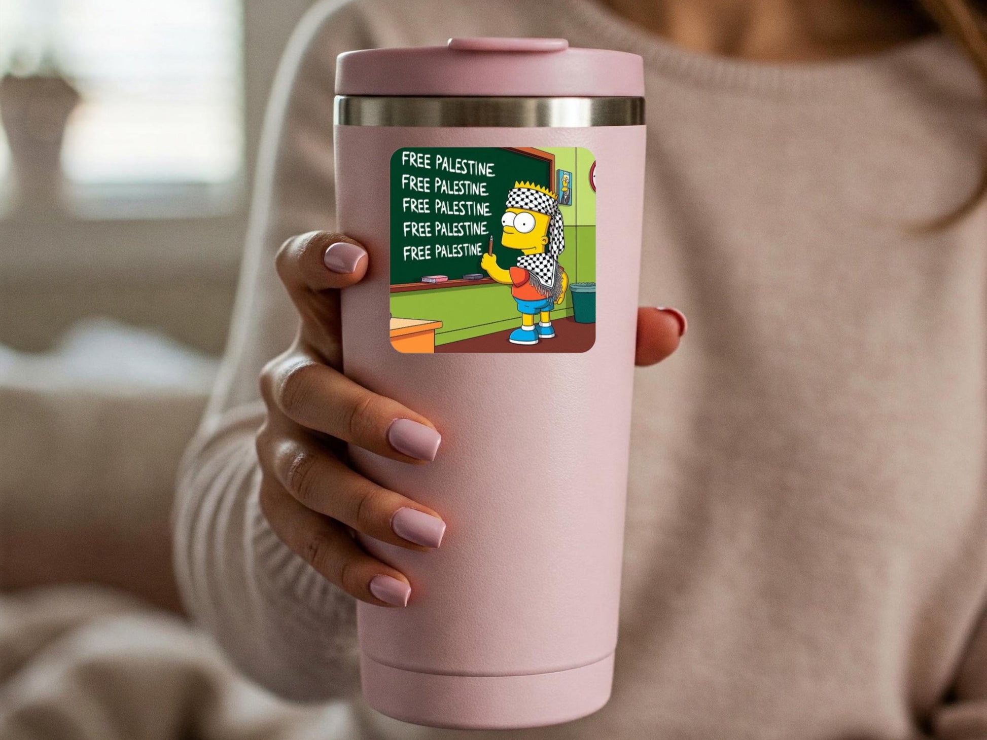 Pro Palestine Activist Vinyl Stickers for Journal Popular Yellow Cartoon Character with the message Free Palestine