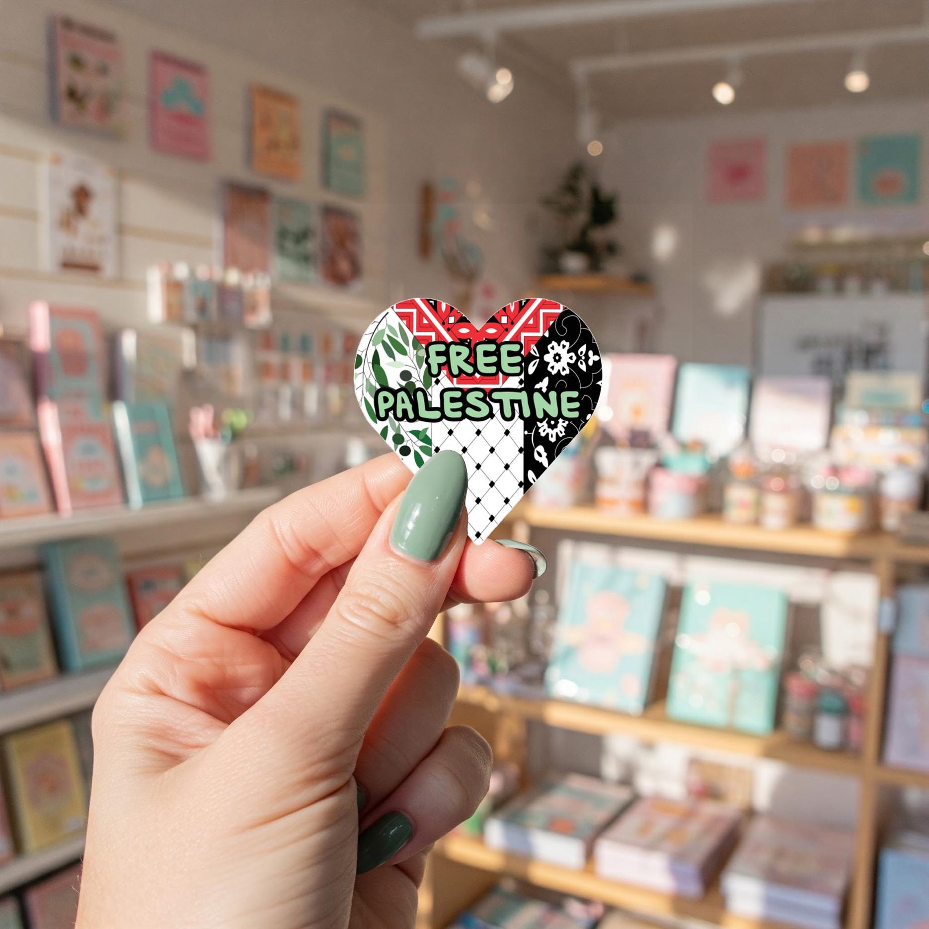Free Palestine Vinyl Bumper Decal - Solidarity Decal for Car Windscreen, Laptop, Water Bottle - Palestine Flag Love Heart Sticker