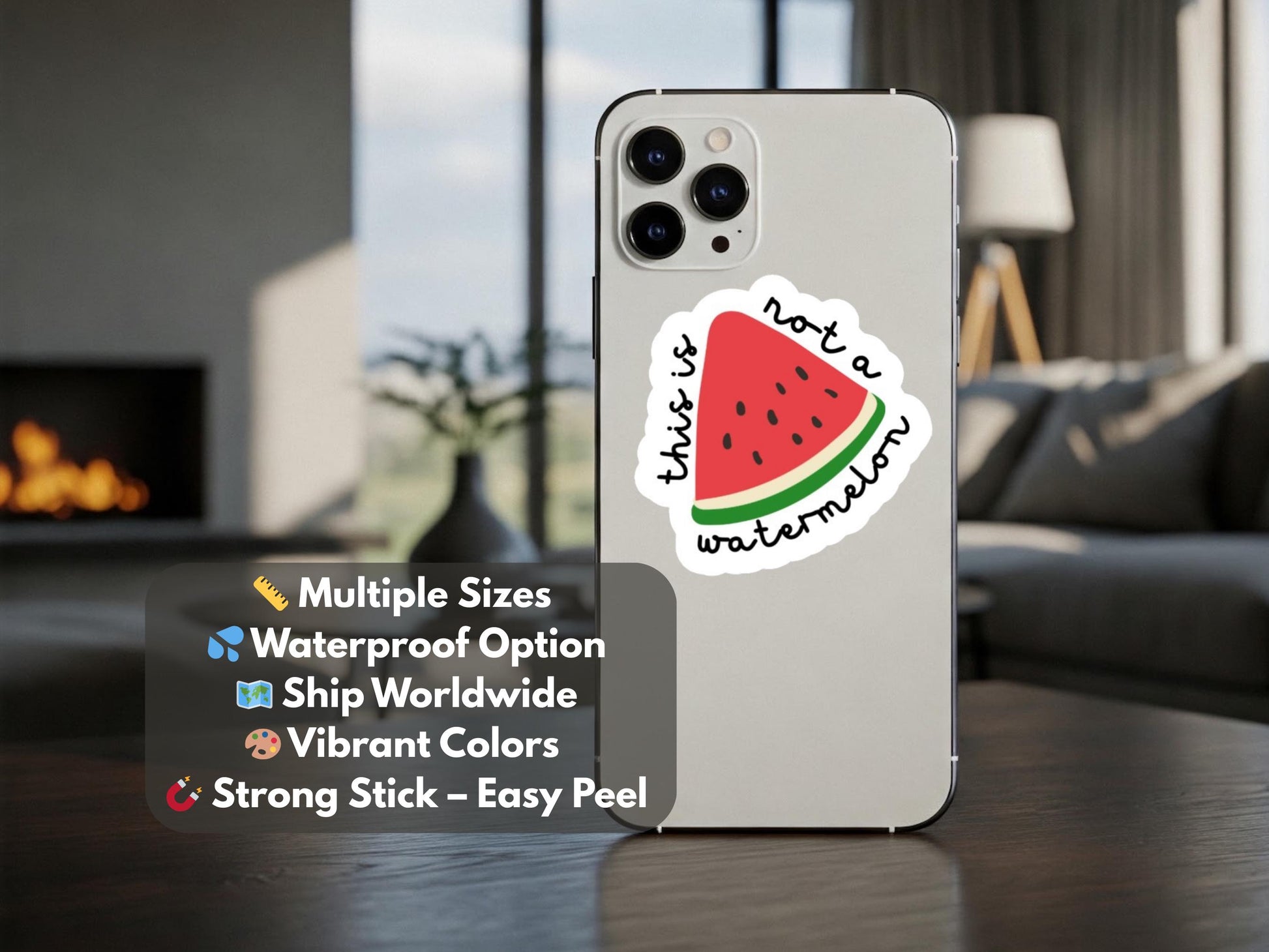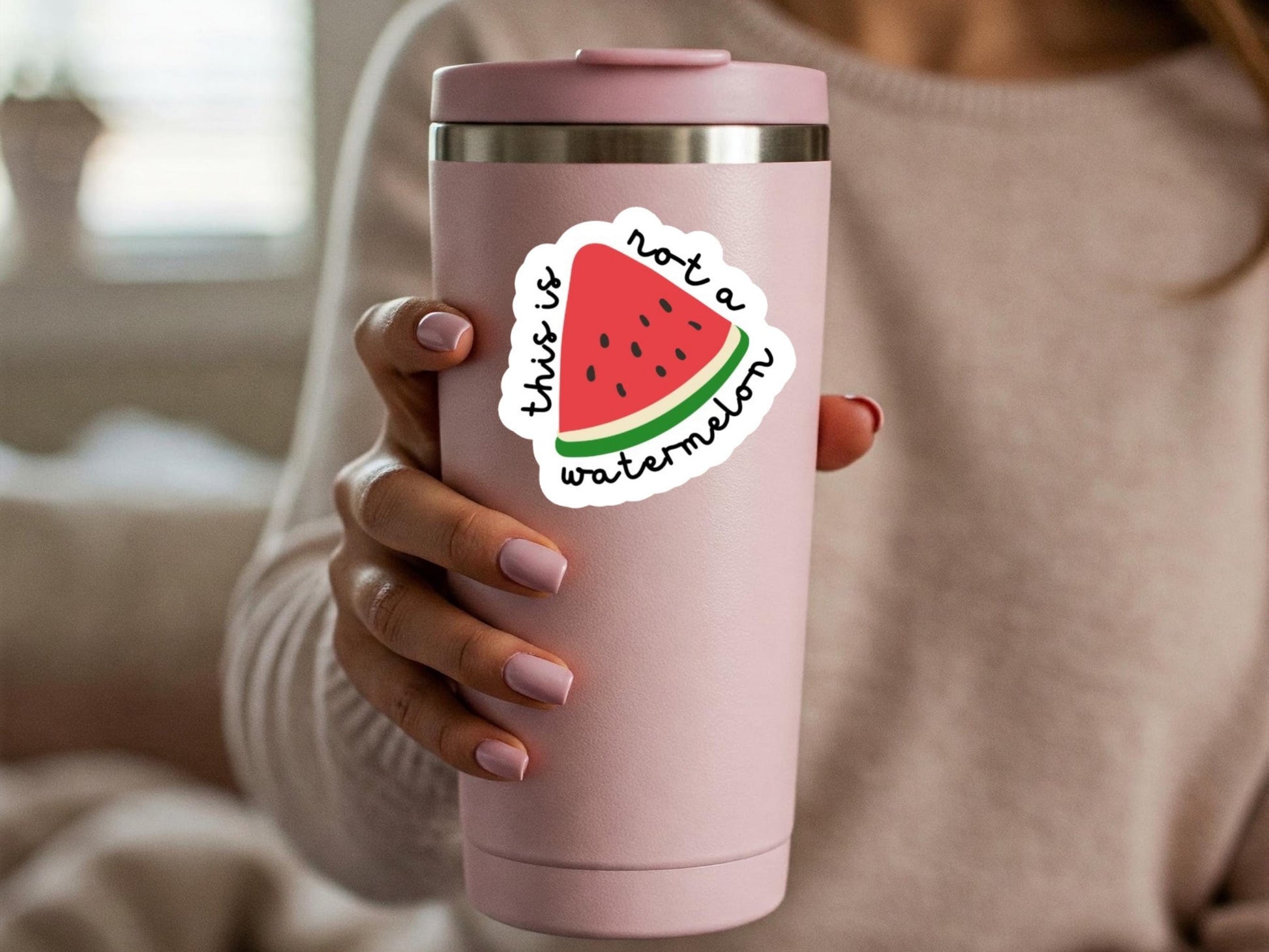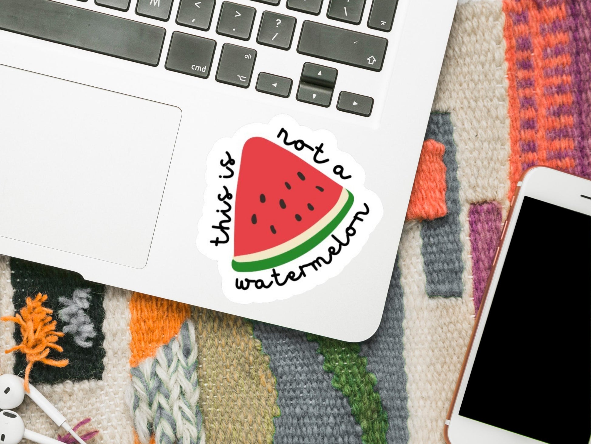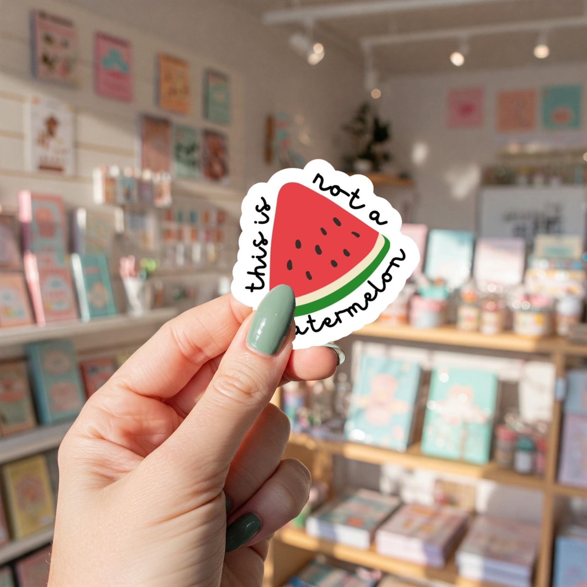 Stickers for Pro Palestinian Activist with Watermelon Graphic Iconic symbol of Palestine now as a Gloss Sticker Featuring the phrase "this is not a watermelon" all around it