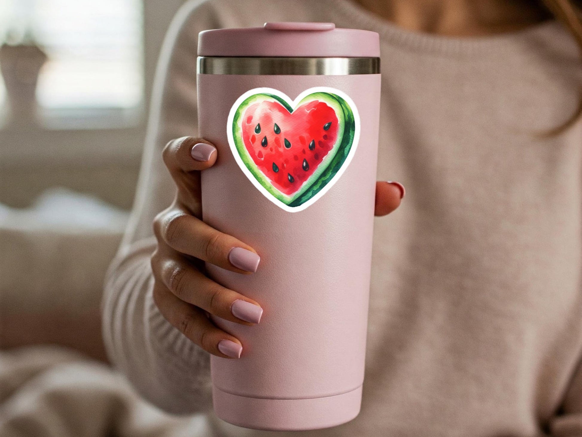 Glossy Watermelon Decal for Water Bottle in Solidarity with Palestine Watermelon in the shape of a Heart