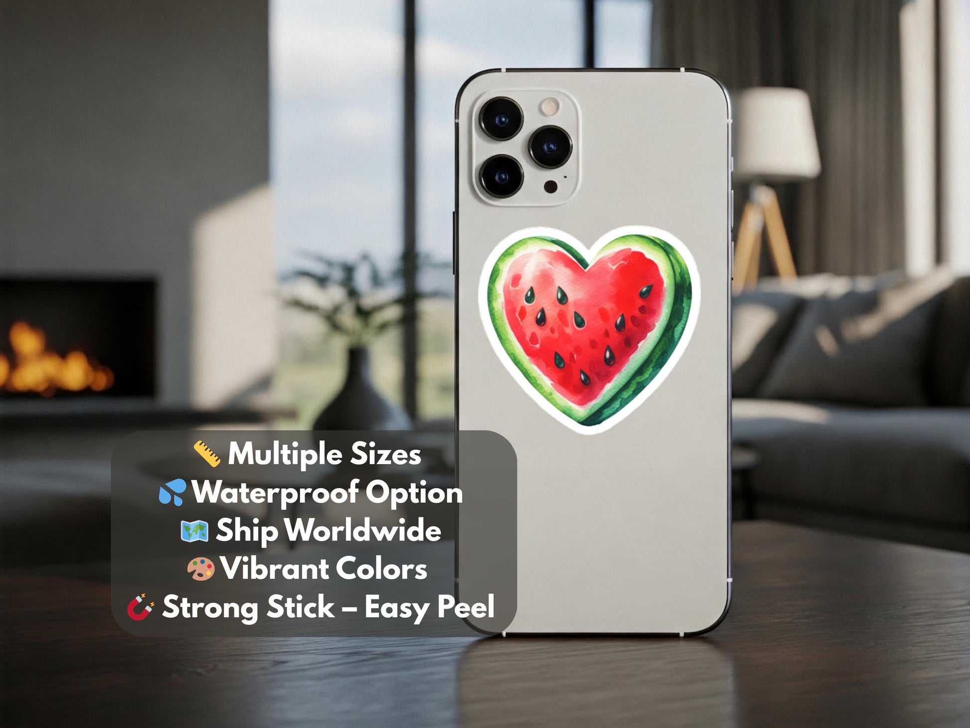 Glossy Watermelon Vinyl Decal for Phone Case - Symbol of Palestine for Pro Palestinian Activist - Sticker for Laptop, Car Bumper - Save Gaza