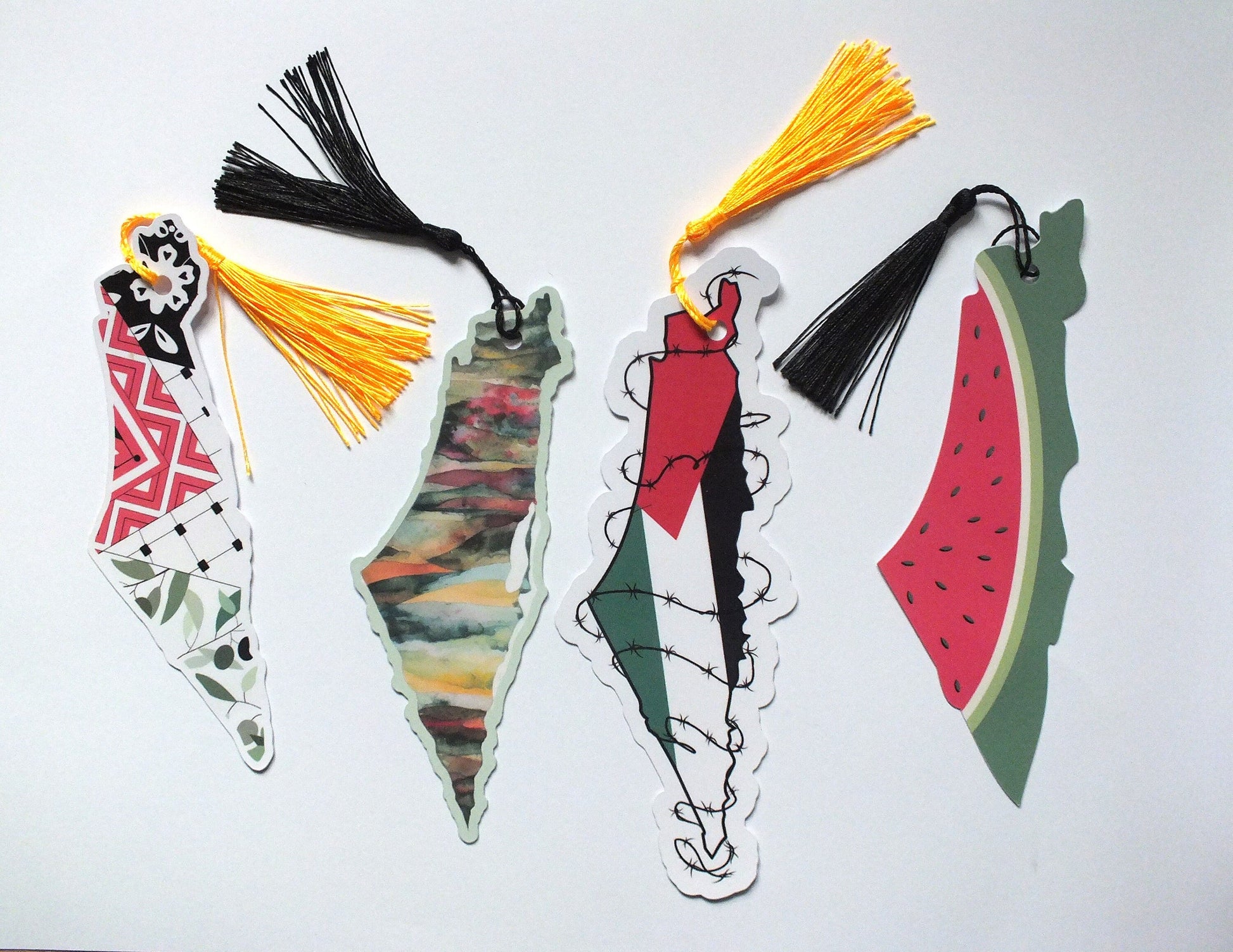 Bookmarks in the shape of the Map of Palestine with a Black Tassel