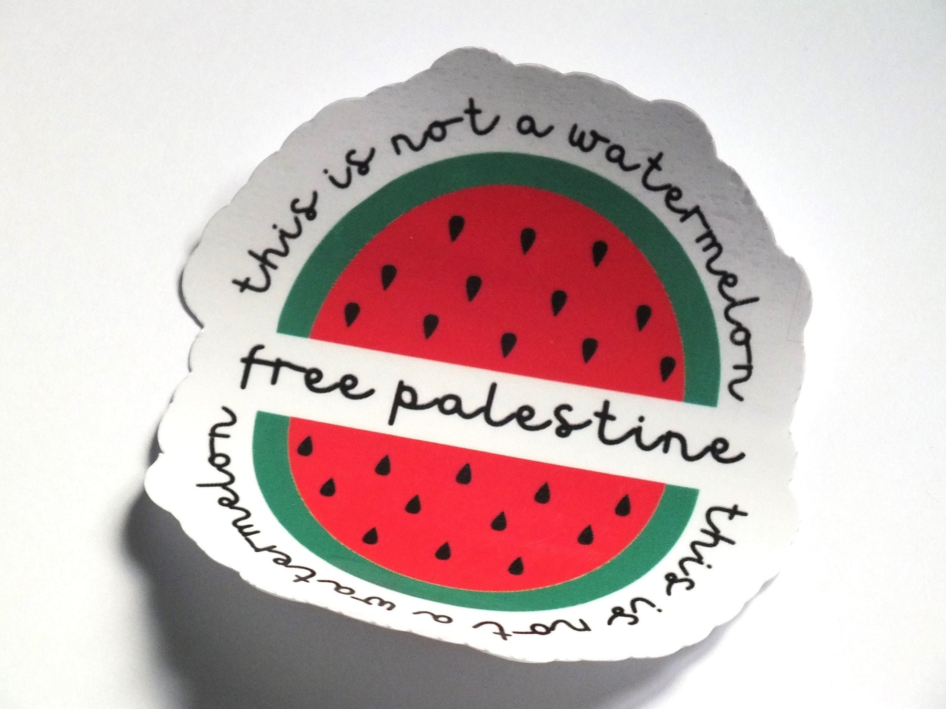 Vinyl Free Palestine Watermelon Decals for iPhone Case and Laptop in Solidarity with Gaza 3 different designs of Watermelon with the phrase free palestine and this is not a watermelon around it